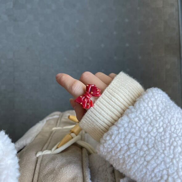 holiday red girly ribbon ring